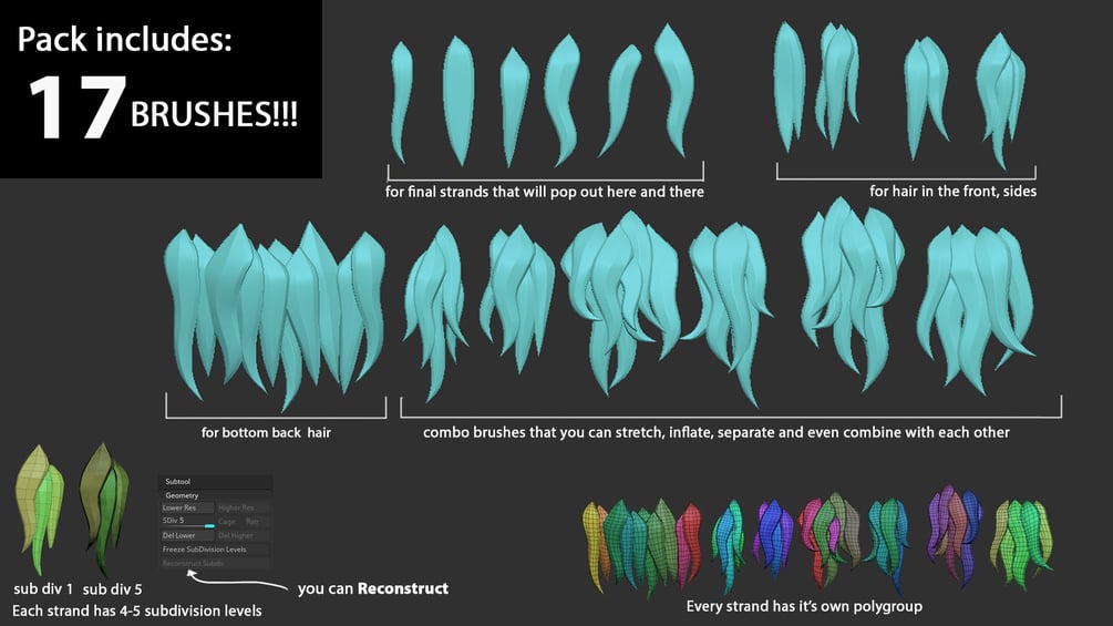 - Anime_hair_brushes_scene.ztl (scene with strands and test head)